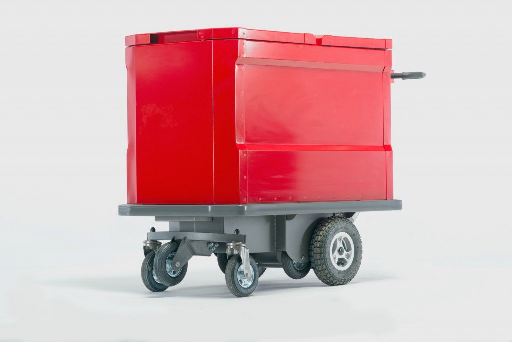 Der Zustellwagen ist mit Lithium-Batterien und einem kräftigen 500 W-Motor ausgerüstet. Individuelle Anpassungen machen diesen elektrischen Handwagen zum perfekten Werkzeug.