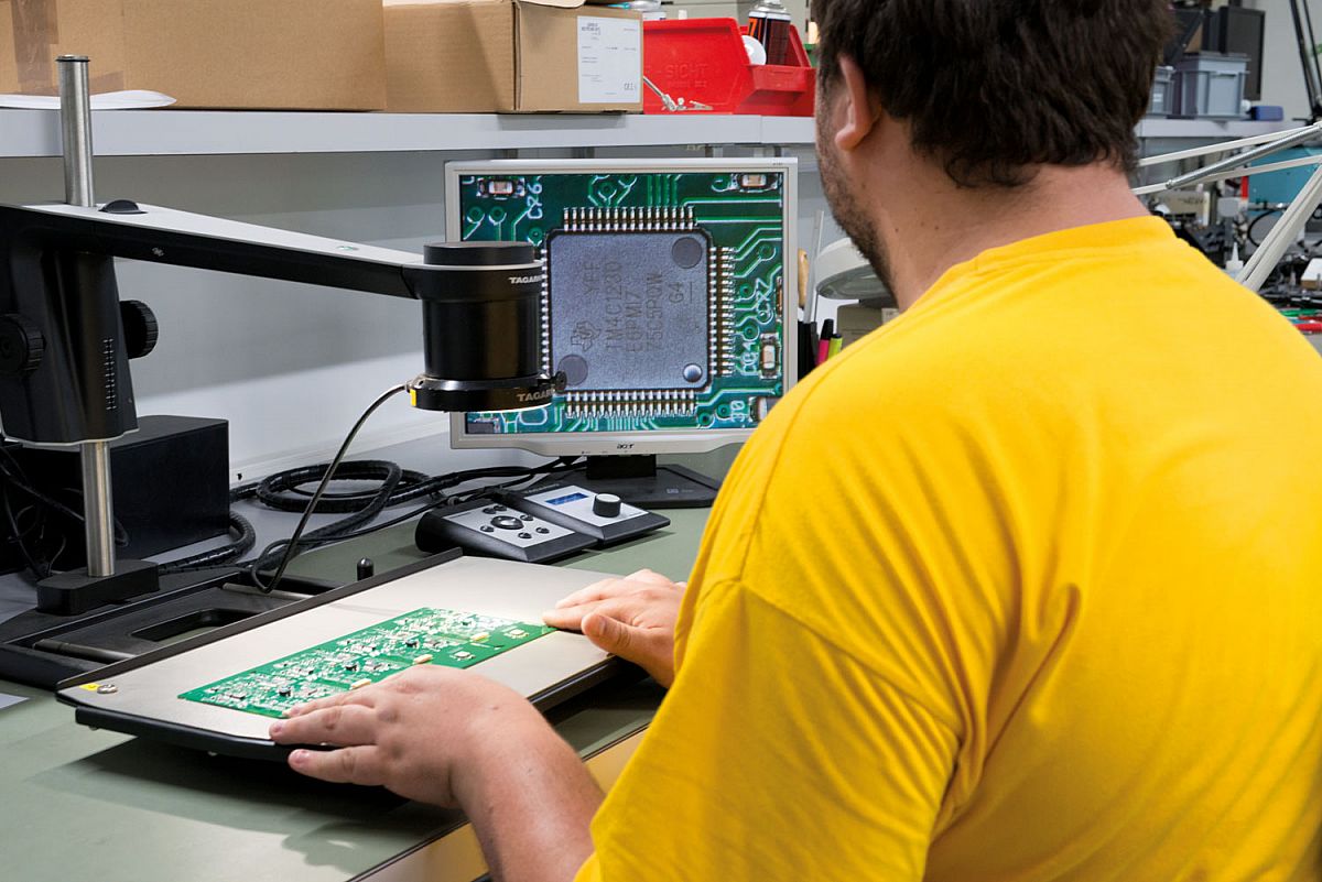 Die Qualitätssicherung hat einen grossen Stellenwert. Hochauflösende Kameras fotografieren die fertigen Teile und eine Software sucht Unregelmässigkeiten auf den Bildern. Fehlende oder verdrehte Bauteile und sogar ungenügende Lötstellen werden so entdeckt. Die menschliche Kontrolle unter der Lupe kann jedoch nicht in jedem Fall ersetzt werden. Ueli Weber: “Unsere zuverlässigen und langjährigen Mitarbeiter sind das Rezept zur Qualität“.