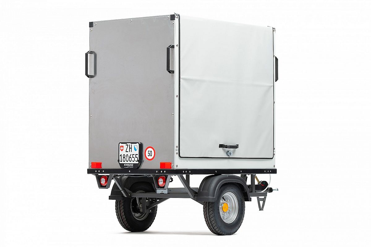 Der Anhänger erlaubt ein grösseres Ladevolumen als der PAH und lässt sich vom KYBURZ DXP oder DXC ziehen.