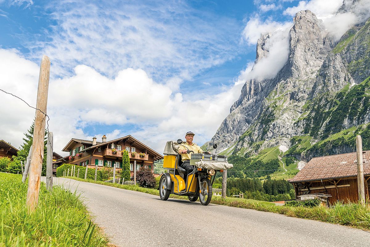In the past, mail was stored daily all over the village, but today the delivery staff in Grindelwald pack their KYBURZ vehicles and trailers once when they start work and deliver all the mail by noon - without reloading. Hansueli Michel: "In winter I only have to do about ten percent of the tour on foot, because I discovered some tricks: If it's extremely steep and slippery, I descend backwards - the DXP stops! Sure, Hansueli Michel wouldn't return his vehicle.