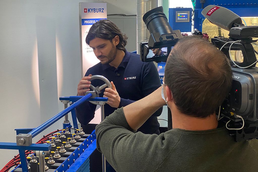 A television crew from SRF filmed the battery recycling in Freienstein. From the removal of the batteries to the disassembly into their individual components, cameraman Martin Amsler filmed all the processes. TV producer and journalist Sandra Odermatt asked competent questions in interviews with Yunus Ruff and Olivier Groux.