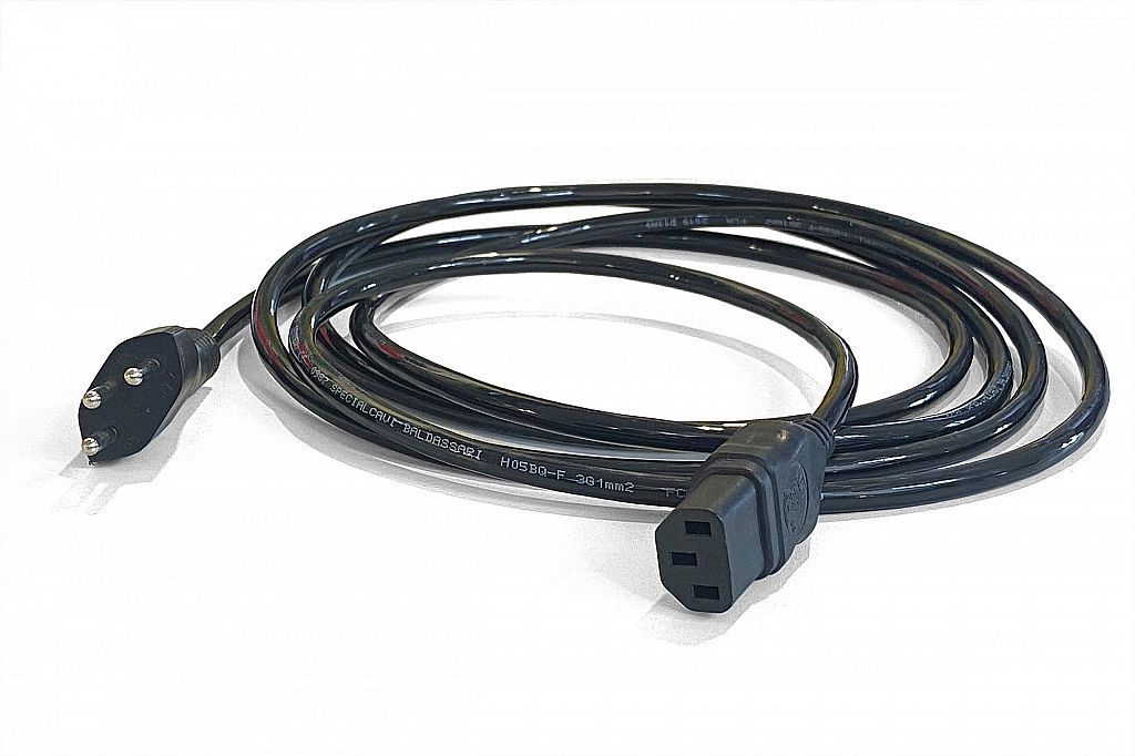 KYBURZ vehicles can be plugged into any normal household socket (T12) with a few exceptions. On the vehicle side, a type C13 socket is fitted. The connection is known under the term "cold appliance cable". The black KYBURZ cables are designed for max. 10 A and have a polyurethane sheath. This material is particularly robust and will even survive being run over by a vehicle. This makes it particularly suitable for industrial applications.