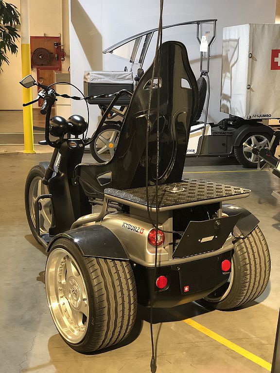 This eTrolley was originally built for the service mechanics and was used by Joel Stanzione and Flurin Vicentini. Afterward, the eTrolley went on to Turi. The service department has now built a new model for service mechanics.