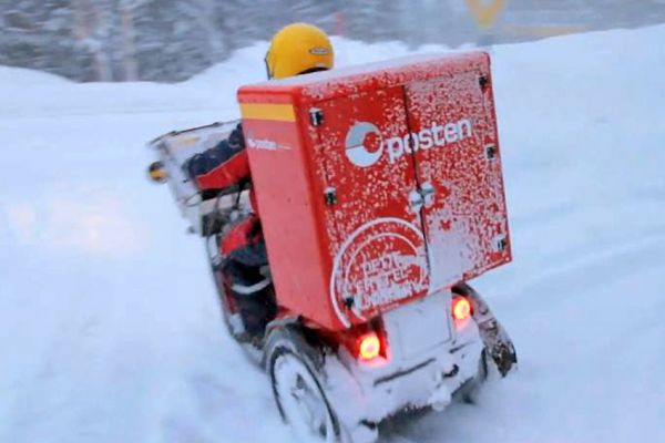 Test d'un robot de livraison autonome pour la poste norvégienne à Kongsberg (NO). Un projet mené par Boddy Mobility