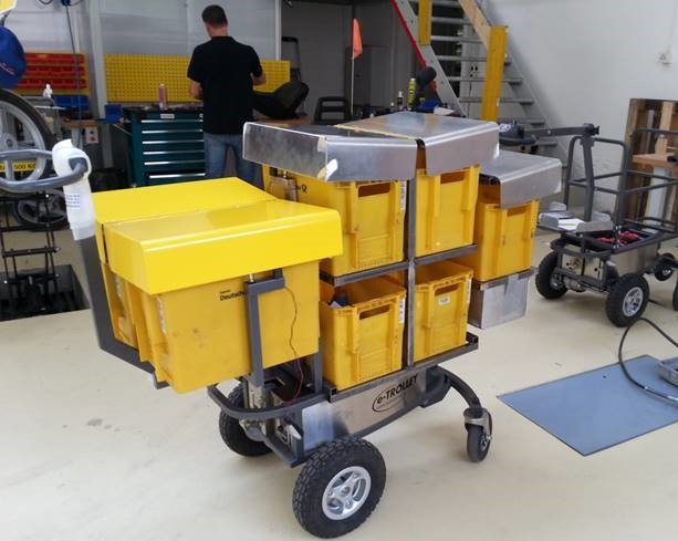 Le développement du eTrolley a commencé vers 2010/2011 pour un projet avec la Poste luxembourgeoise. La conception a été réalisée en collaboration avec Mark Wyss. En 2012, les premiers eTrolley V1 ont été livrés. En 2013, la poste autrichienne a déjà commencé à utiliser des eTrolley.