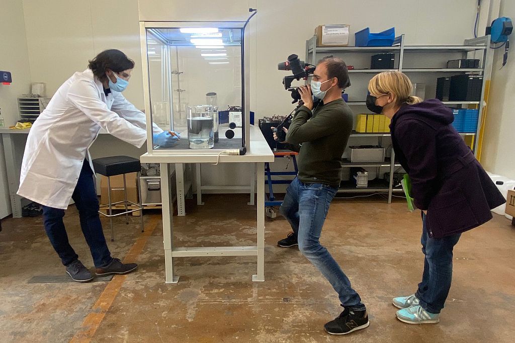 Une équipe de télévision de SRF a filmé le recyclage des batteries à Freienstein. Du retrait des batteries au démontage de leurs composants individuels, le caméraman Martin Amsler a filmé tous les processus. La productrice de télévision et journaliste Sandra Odermatt a posé des questions d'expert lors des entretiens avec Yunus Ruff et Olivier Groux.