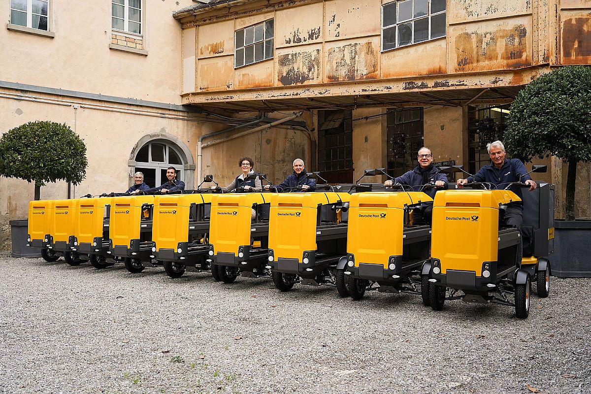 Cette semaine encore, les quatre derniers des dix KYBURZ ePedelec seront livrés à la Deutsche Post. De Munich à Hambourg, de Karlsruhe à Berlin, c'est-à-dire dans tous les États allemands, les véhicules de distribution postale sans chaîne seront soumis à un test de longue durée sur le terrain. Dans une ambiance joyeuse, 9 véhicules de la série pilote ont été alignés à la suite et photographiés pour le dernier numéro du journal de la société avant d'être livrés au pays voisin. Au total, 15 véhicules ont été produits - trois exemplaires pour d'autres clients nationaux et étrangers et deux autres pour les essais et la certification des directives européennes.