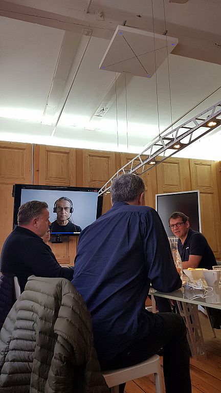 Comme tout est un peu différent cette année, deux participants étaient présents par appel vidéo depuis l'extérieur. Luca Botta a procédé à des ajustements de notre technologie sonore à cette fin. La salle de réunion «besprechen» est déjà équipée du «Logitech Meet up» et est maintenant complétée par le «Sennheiser Team Connect Ceiling 2». Le microphone permet une transmission du son propre et sans interférences. Les deux participants à distance, Wilf et Peter, ont même pu entendre les souris grignoter le fromage.