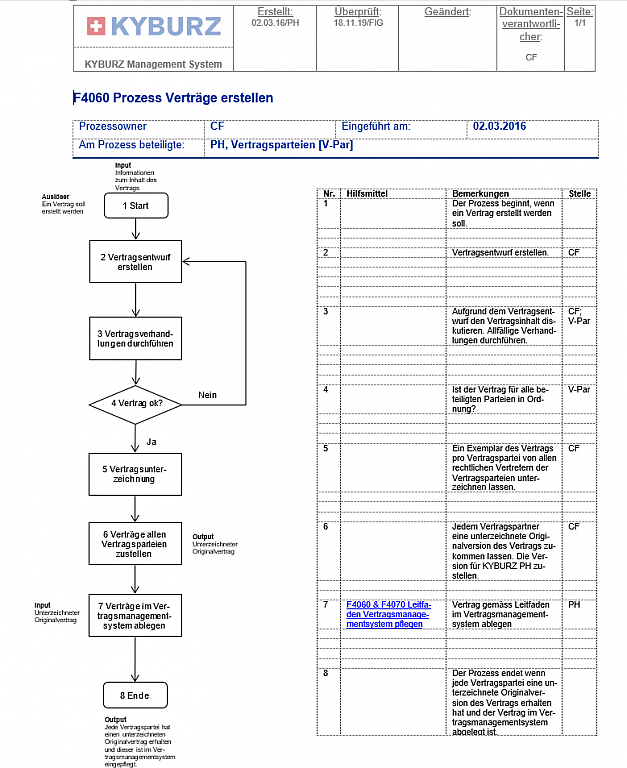 Un audit interne est un auto-examen de tous les processus de travail. Comme nous sommes des constructeurs automobiles certifiés, nous devons faire consigner par écrit tous les processus de travail. Nous les avons classés dans notre "Kyburz Management System" (KMS). Vous pouvez trouver toutes ces descriptions de tous les domaines de l'entreprise dans notre stockage de données sous : /Volumes/Platform/00 KYBURZ Management System/10 Work processes