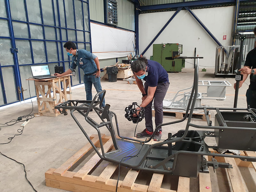 Le premier châssis DXP 5.0 produit en Thaïlande est terminé. Le châssis fini a été mesuré et comparé avec les données CAO d'origine. Le résultat : les écarts sont très faibles et se situent partout dans la tolérance autorisée.