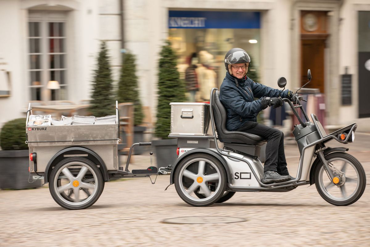 Pour soutenir les entreprises commerciales, nous proposons à la location nos véhicules KYBURZ pour diverses livraisons. Ces véhicules ont fait leurs preuves depuis une décennie dans les opérations de distribution des entreprises postales du monde entier. Louez un DXS et livrez vos marchandises à vos clients rapidement et sans émissions.