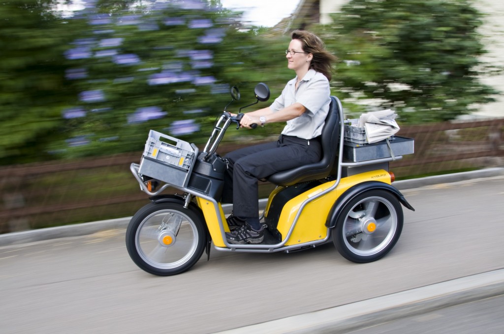 Le KYBURZ DXP est le véhicule de distribution électrique pour les professionnels. Il est entièrement conçu pour les tâches de la distribution postale et a été testé dans les plus difficiles conditions. La surface de chargement avant peut être au choix horizontale ou inclinée.