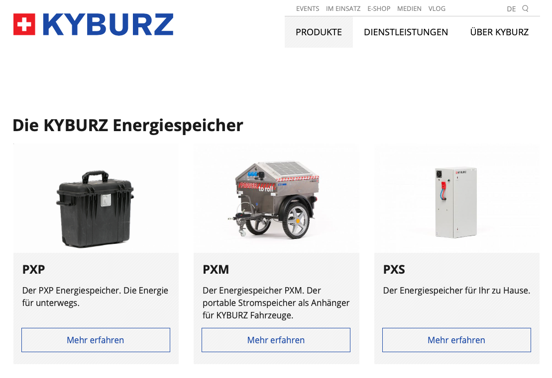 Die Produkte aus unserer Energiespeicher-Linie haben einen neuen Bereich auf unserer Webseite erhalten. Neu findet man unter dem Reiter «Produkte» den direkten Link zum Bereich «Energiespeicher».