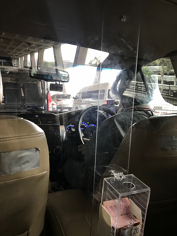 Bei der Ankunft in Bangkok ist alles sehr gut und strikt organisiert. Nach dem Verlassen des Flugzeuges, setzt man sich auf Stühle vor den Kontrollstationen. Sind alle Dokumente vorhanden, werden diese an drei Checkpoints kontrolliert. Man kann sich nahezu nie alleine bewegen. Ein Airport-Staff in voller Schutzkleidung ist immer in der Nähe. Mit dem eigens vom Hotel organisierten Taxi, was auch im Covid-Style «geschmückt» war, gings zum Hotel.