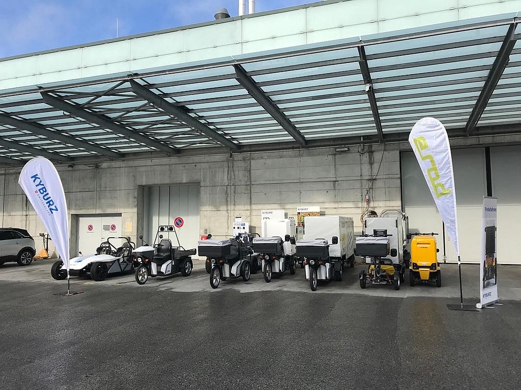 Heute, Montag, wurde auch gleich ein weiteres Testfahrzeug nach Basel geliefert – hier ist es ein KYBURZ DXP mit einem Fixboxanhänger (PAHF).