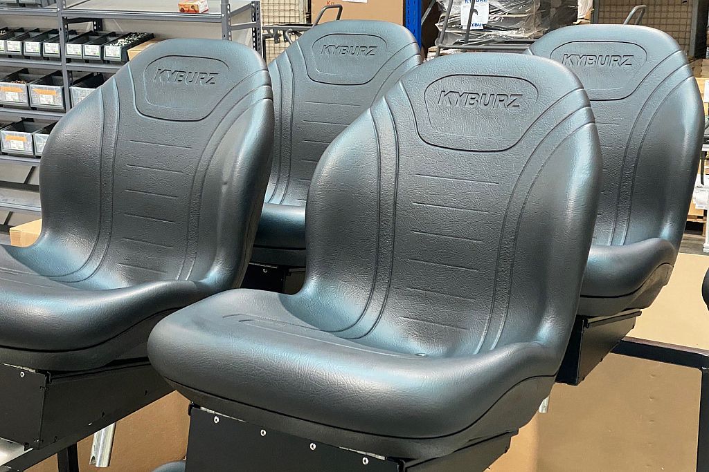 Im Jahr 2020 bestellte KYBURZ ca. 2000 Sitze. Viele davon wurden auf Neufahrzeuge verbaut. Die Zahl der Sitz, die über den Webshop als Ersatz für zerschlissene Sitze verschickt werden, ist massiv gesunken, nachdem nun stärkeres Material (Vinyl) verwendet wird.