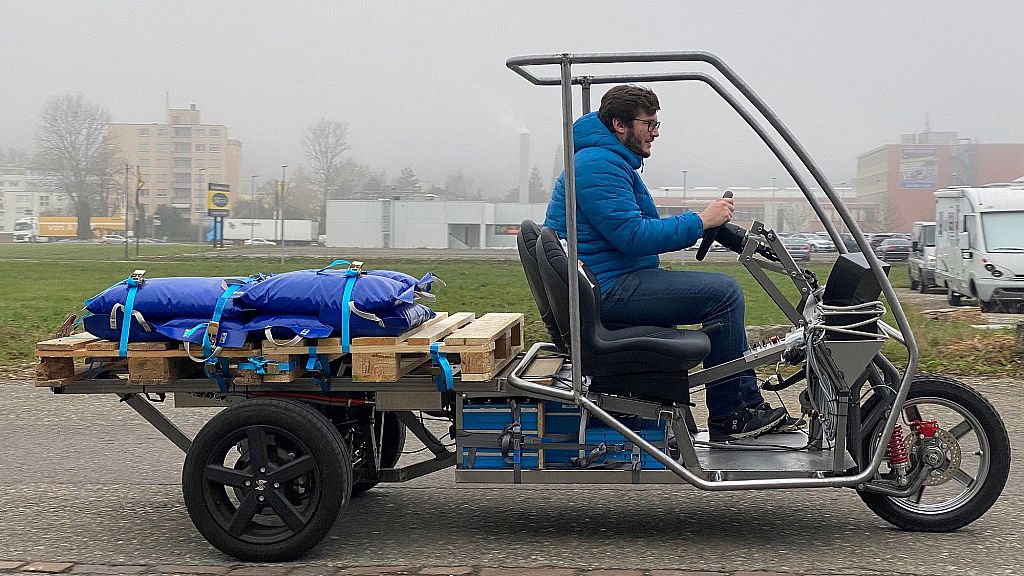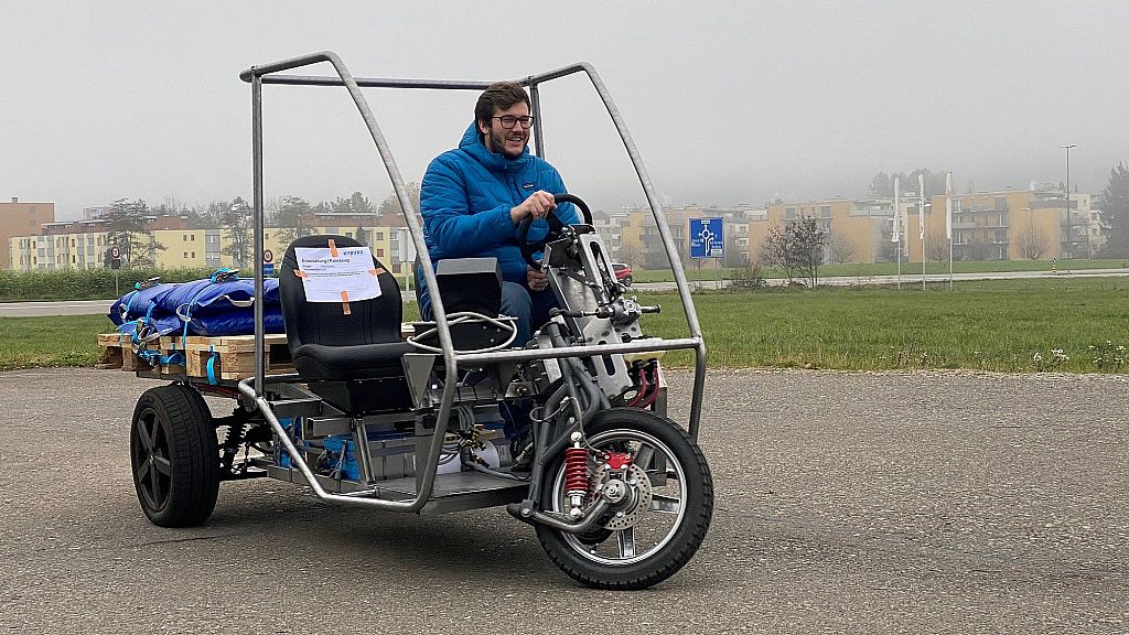 Seit August dieses Jahres arbeitet ein kleines Team um Luca Zimmermann an der Entwicklung des neuen KYBURZ-Fahrzeugs. Letzte Woche konnte die Erstfahrt mit dem Funktionsmodell durchgeführt werden. Der Antrieb und die Aufhängung hinten stammen aus dem eRod. An Power fehlt es also nicht. Das Konzept mit drei Rädern und fast 45° Lenkeinschlag ermöglicht eine erstaunliche Wendigkeit.